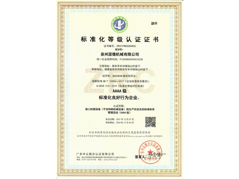 標(biāo)準(zhǔn)化等級認證證書