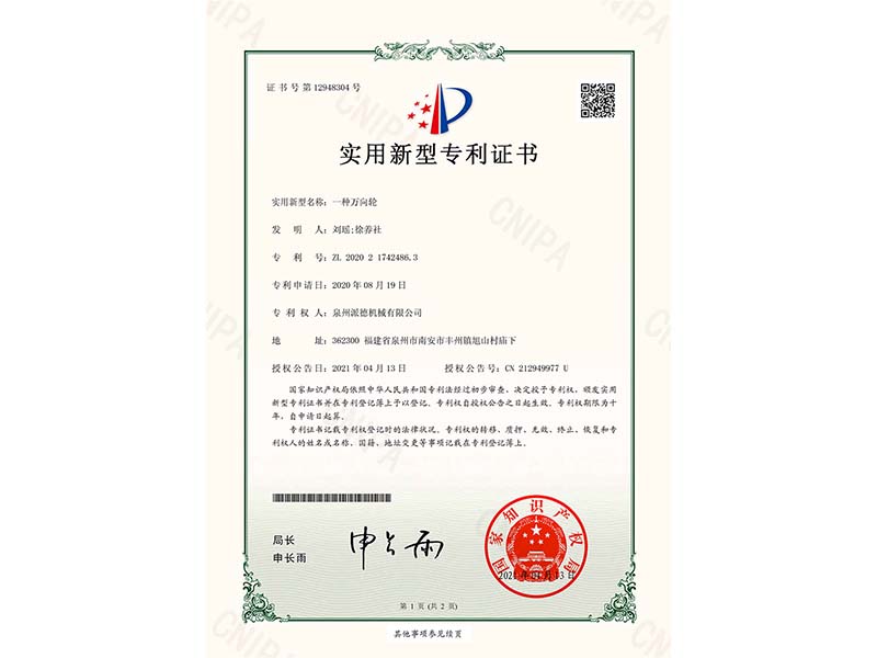 首頁 > 品牌中心 > 專利證書