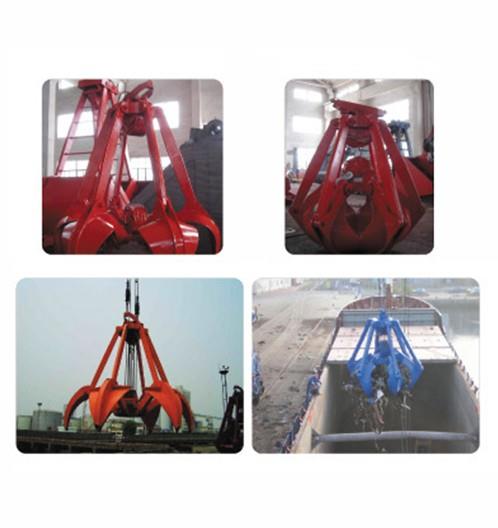 The remote control grab is a novel grab which is used to control the opening of a single cable crane through a wireless remote control transmitter. It does not need external energy. It can automatically close with the lifting of the hook on the pile, and can automatically open at any position in the air and stop at any time. There is a storage battery inside the grab, which controls the opening and closing of the grab by controlling the opening and closing of the solenoid valve. The grab does not need any other power supply, which is green. As a new invention of mechatronics, this grab is very popular with users. Its birth rewrites the history of low efficiency of single rope grab in the lifting and transportation industry. The remote control grab is generally composed of upper bearing beam assembly, sliding seat assembly, lower bearing beam assembly, bucket body, strut and oil cylinder. Among them, there are pulley blocks connected with the crane in the upper bearing beam assembly and sliding seat assembly, and the cylinder and piston rod of the oil cylinder are respectively connected with the lower bearing beam assembly and sliding seat assembly. The sliding seat can slide up and down under the action of the crane, driving the lower bearing beam to lift together, thus driving the grab to close; Through the remote control, the lower bearing beam and the sliding seat are separated, so as to control the opening of the grab.